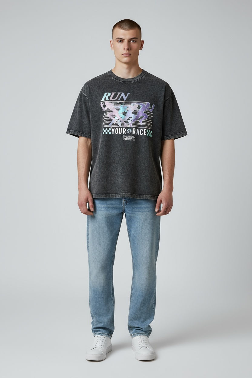RUN YOUR RACE TEE ACID WASH BLACK
